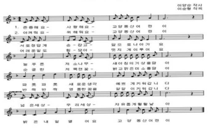 학교를 상징하는 초록색은 학생들에게 몸과 마음을 시원하게 하고 긴장을 완화시켜 주며, 노란 원은 고양동산초의 귀한 학생 한 명 한 명, 오른쪽의 날개는 부모님의 보호와 보살핌, 왼쪽의 날개는 선생님의 사랑과 가르침. 밑받침은 겸손과 사랑을 지닌 따뜻한 인성, 그라데이션의 초록색은 온 세상의 사람들을 뜻하며 둥근 원은 세상을 품을 수 있는 넓은 마음과 지혜로운 사람으로 성장하자는 뜻하고 있음.